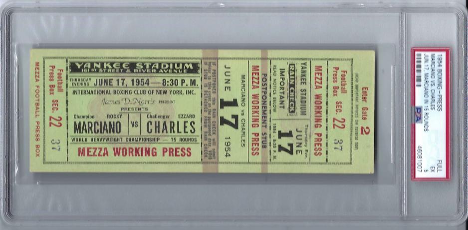 1954 Rocky Marciano Vs Ezzard Charles Heavyweight Championship FightFull Ticket PSA